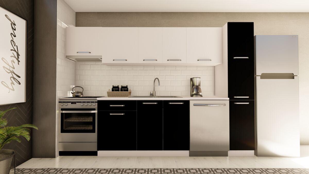 VİSAS CONCEPT _ 300 cm AYAZ HAZIR MUTFAK DOLABI ASPİRATÖR ve KİLER MODÜLLÜ BEYAZ ve SİYAH