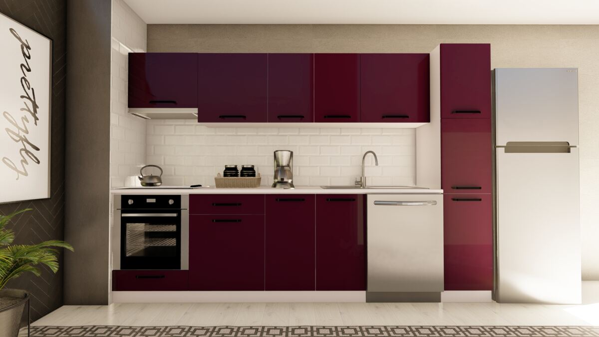 VİSAS CONCEPT _ 300 cm AZRA HAZIR MUTFAK DOLABI ASPİRATÖR, ANKASTRE ve KİLER MODÜLLÜ PARLAK MÜRDÜM