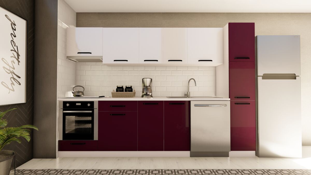 VİSAS CONCEPT _ 300 cm ERVA HAZIR MUTFAK DOLABI ASPİRATÖR, ANKASTRE ve KİLER MODÜLLÜ PARLAK BEYAZ ve MÜRDÜM