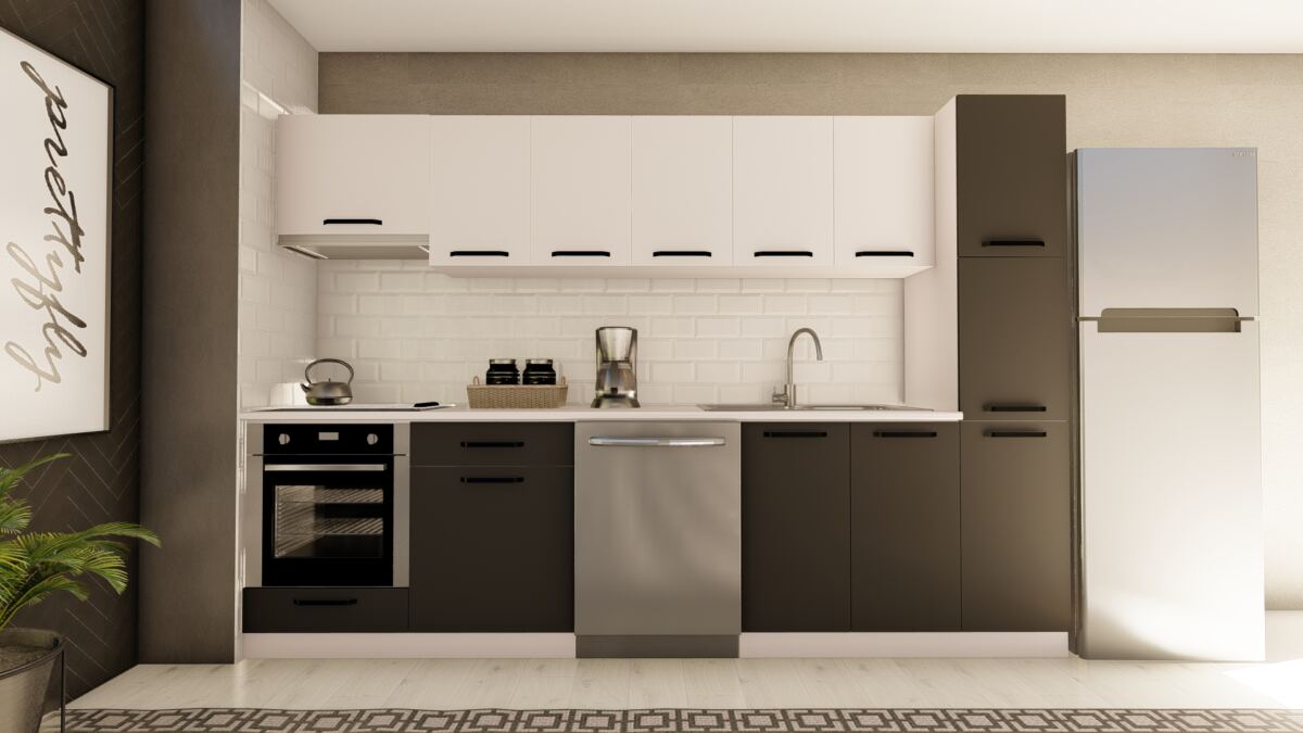 VİSAS CONCEPT _ 300 cm FİLİZ HAZIR MUTFAK DOLABI ASPİRATÖR, ANKASTRE ve KİLER MODÜLLÜ BEYAZ ve ANTRASİT