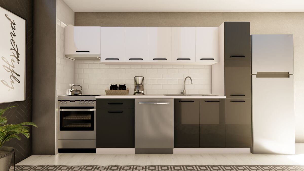 VİSAS CONCEPT _ 300 cm NURAY HAZIR MUTFAK DOLABI ASPİRATÖR ve KİLER MODÜLLÜ PARLAK BEYAZ ve ANTRASİT