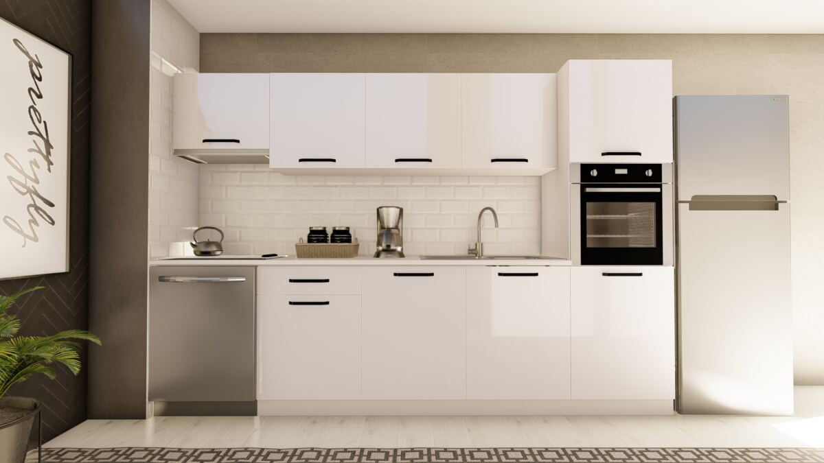VİSAS CONCEPT _ 300 cm YASEMİN HAZIR MUTFAK DOLABI ASPİRATÖR ve ANKASTRE KİLER MODÜLLÜ PARLAK BEYAZ