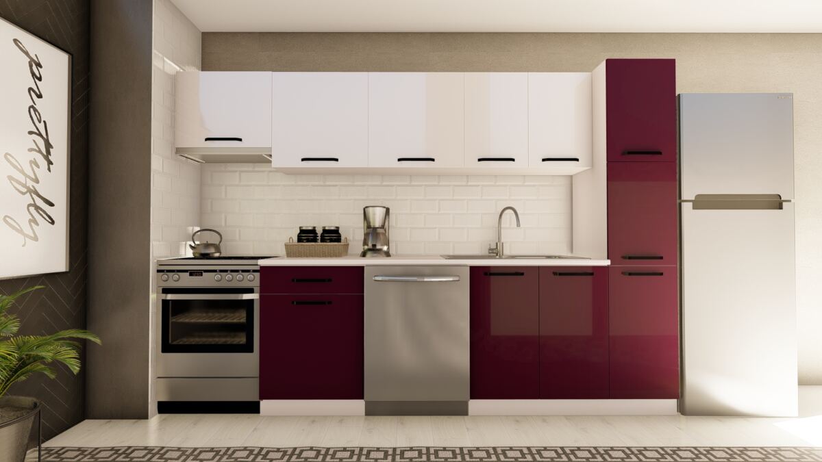 VİSAS CONCEPT _ 300 cm YUDUM HAZIR MUTFAK DOLABI ASPİRATÖR ve KİLER MODÜLLÜ PARLAK BEYAZ ve MÜRDÜM