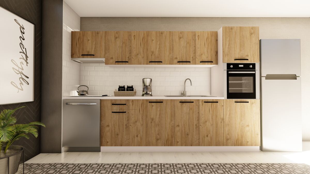 VİSAS CONCEPT _ 320 cm AYLİN HAZIR MUTFAK DOLABI ASPİRATÖR ve ANKASTRE KİLER MODÜLLÜ ATLANTİK ÇAM