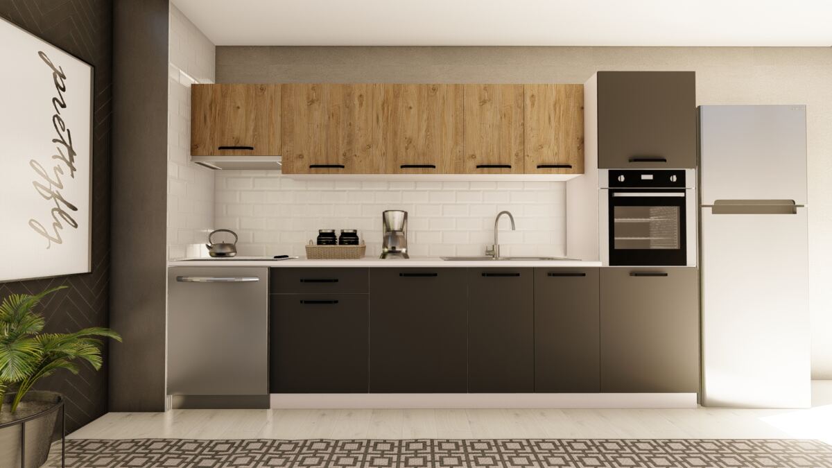 VİSAS CONCEPT _ 320 cm İKLİM HAZIR MUTFAK DOLABI ASPİRATÖR ve ANKASTRE KİLER MODÜLLÜ ATLANTİK ÇAM ve ANTRASİT