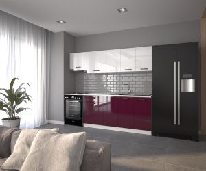 VİSAS CONCEPT_BUĞRA HAZIR MUTFAK DOLABI_Parlak HIGH-GLOSS_Aspiratör Modüllü_Beyaz ve Mürdüm_240 cm