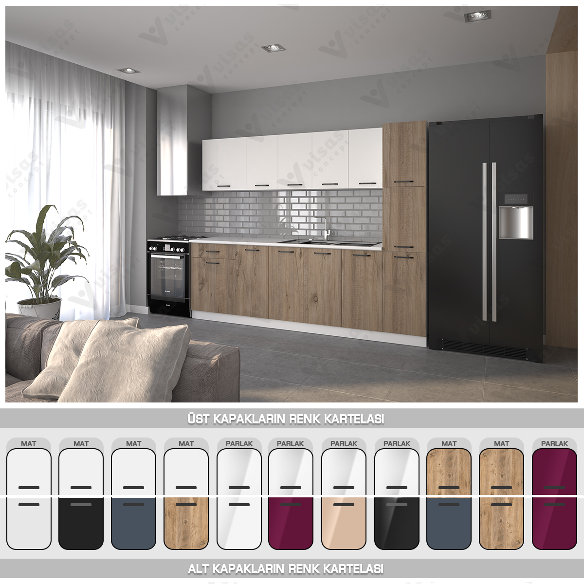 VİSAS CONCEPT_NERGİS HAZIR MUTFAK DOLABI_Kiler Modüllü_Beyaz ve Atlantik Çam_260 cm