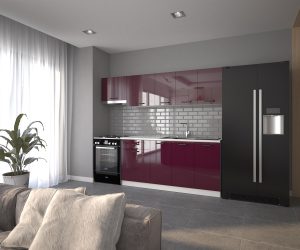 VİSAS CONCEPT_SÜMBÜL HAZIR MUTFAK DOLABI_Parlak HIGH-GLOSS_Aspiratör Modüllü_Mürdüm_240 cm
