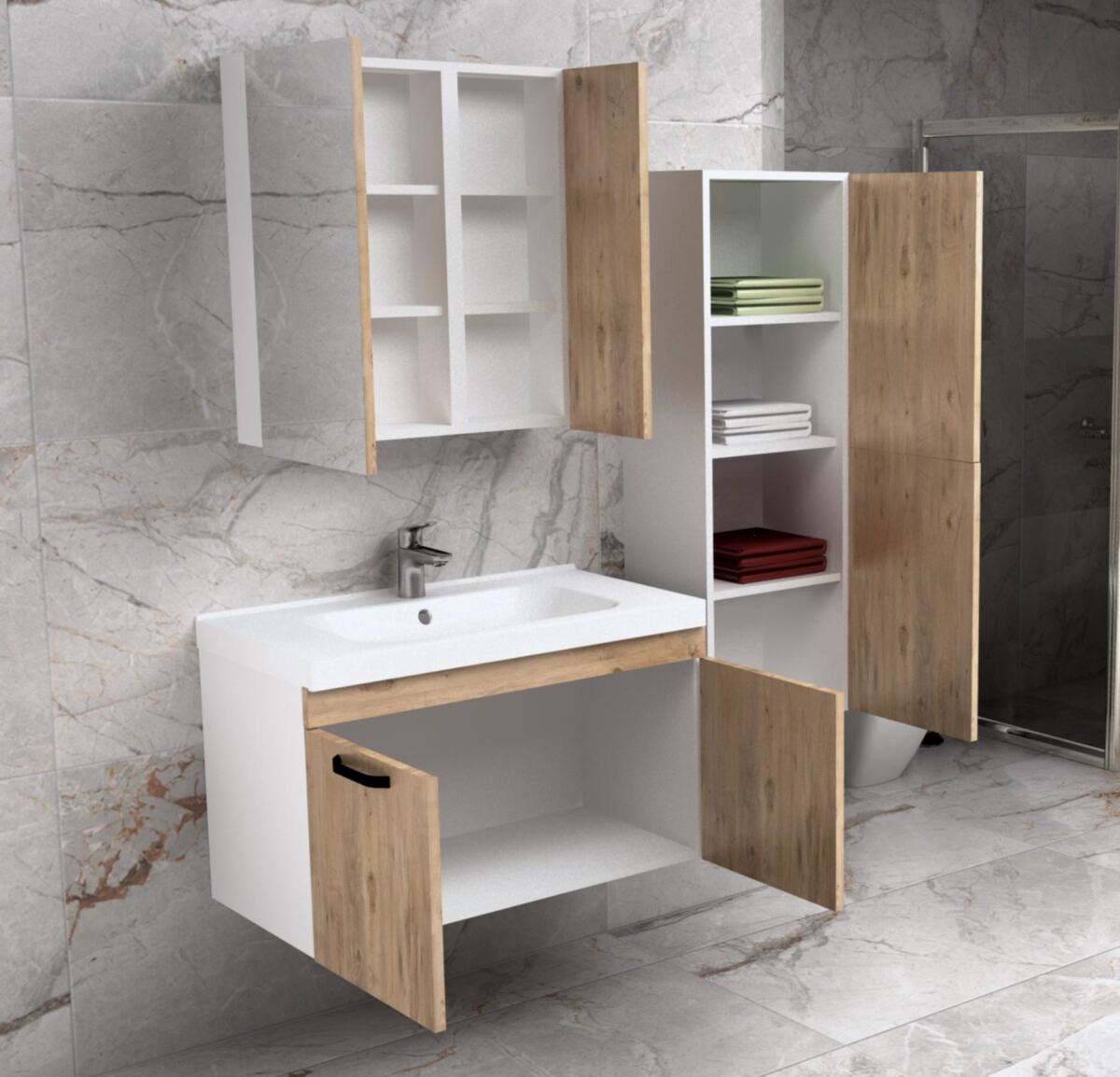 TARÇIN HAZIR BANYO DOLABI I LAVABOLU, AYNALI, BOY DOLAPLI