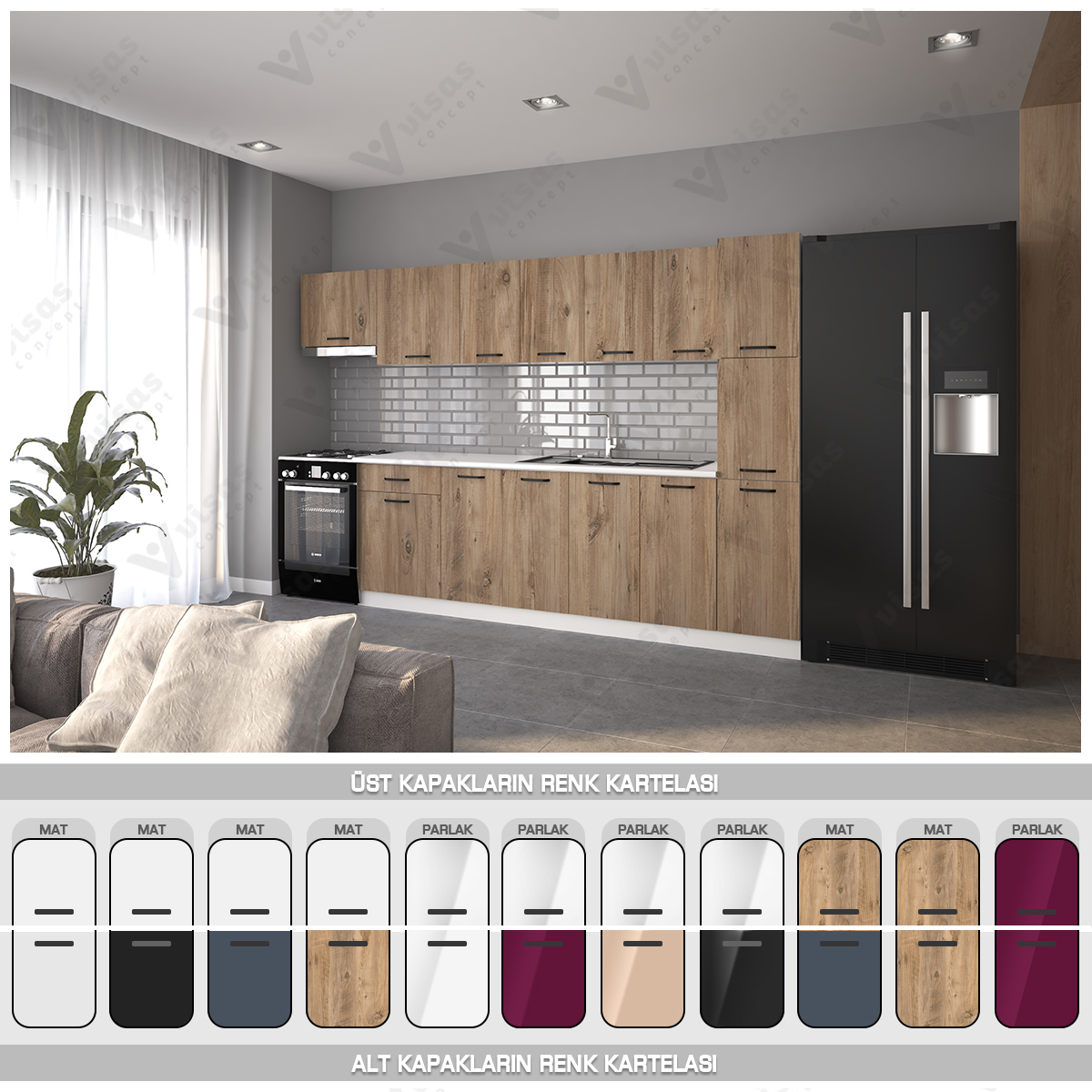 VİSAS CONCEPT_ZEYNEP HAZIR MUTFAK DOLABI_Kiler ve Aspiratör Modüllü_Atlantik Çam_320 cm