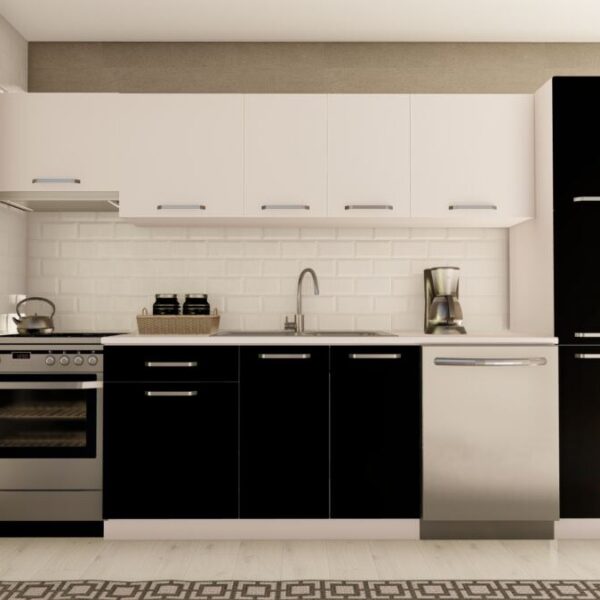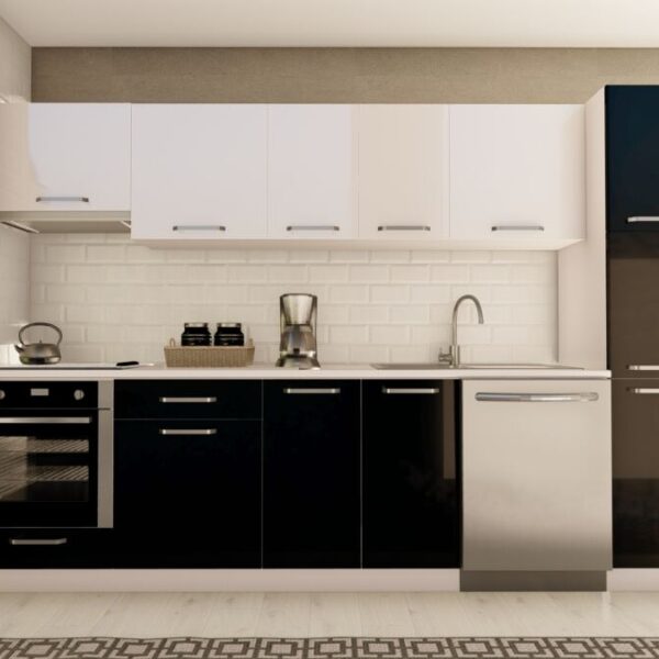 300 cm AYBÜKE HAZIR MUTFAK DOLABI ASPİRATÖR, ANKASTRE ve KİLER MODÜLLÜ PARLAK BEYAZ ve SİYAH