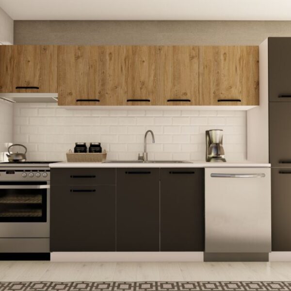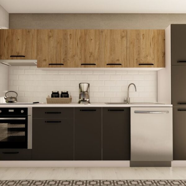 300 cm BAHAR HAZIR MUTFAK DOLABI ASPİRATÖR, ANKASTRE ve KİLER MODÜLLÜ ATLANTİK ÇAM ve ANTRASİT